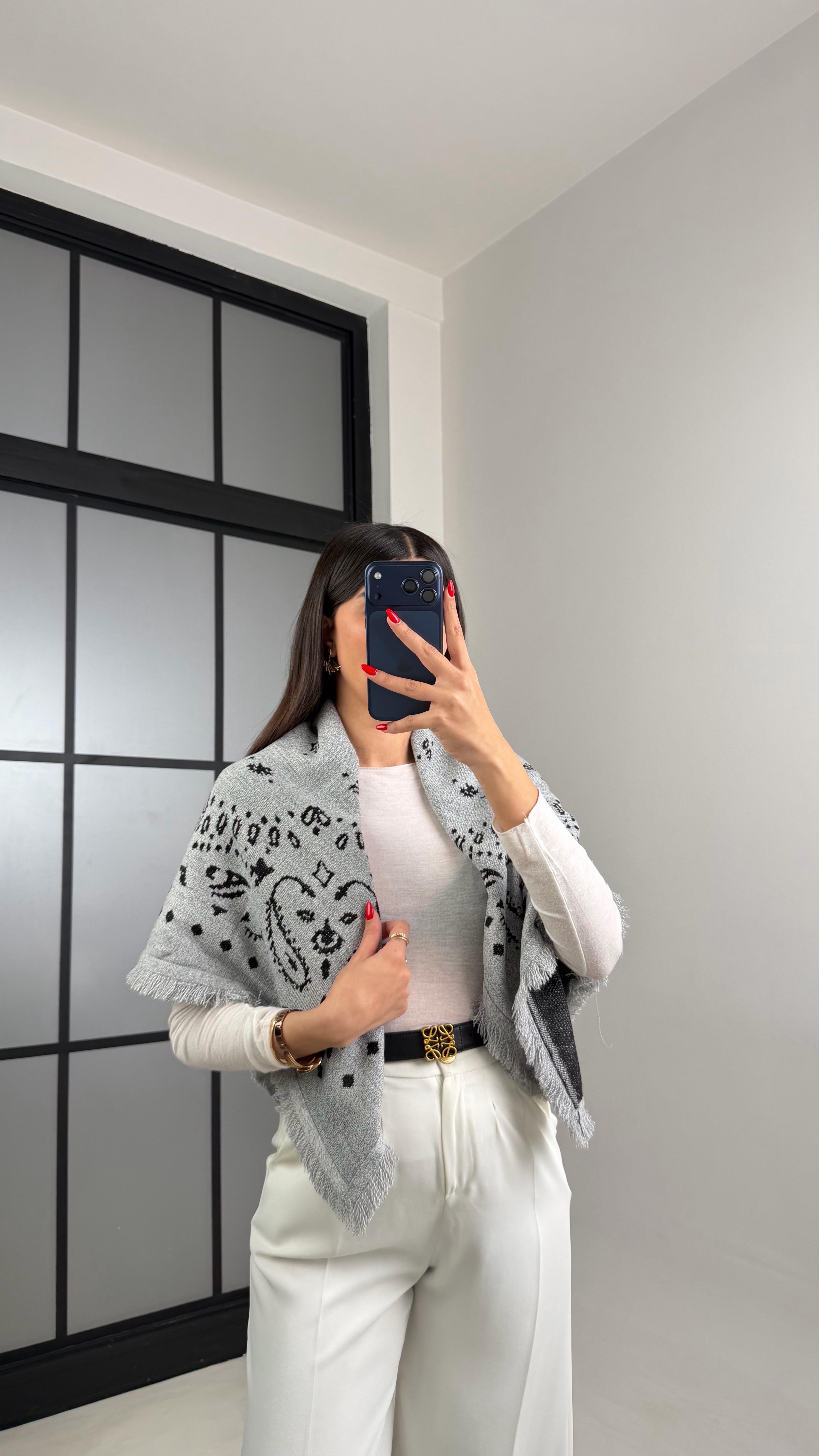 Gri Desenli Muadil Triko Şal GAUS-00954