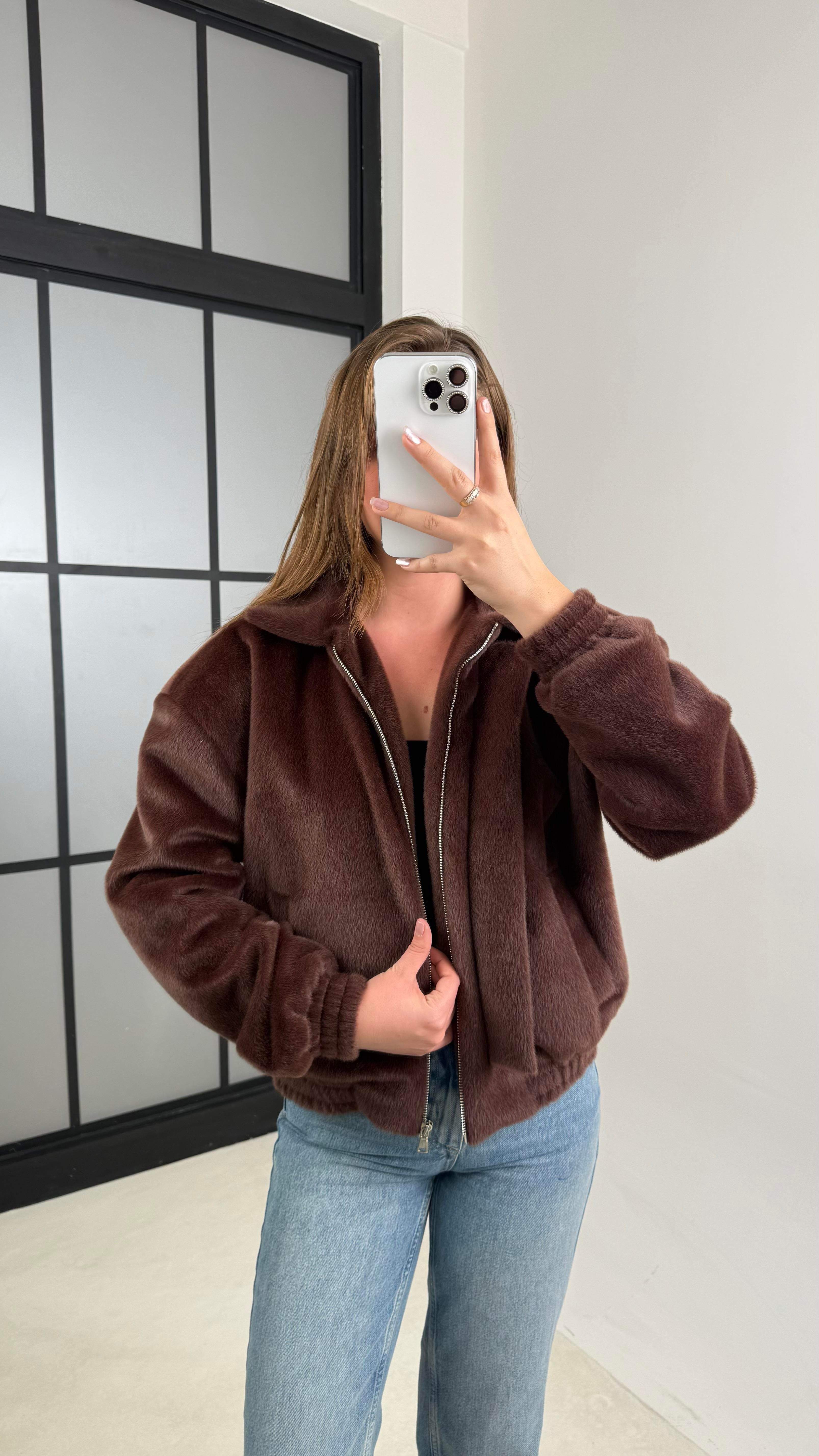 Kahve  Astarlı Kürk Bomber Ceket GAUS-00496GAUSCEKETGAUS-00496