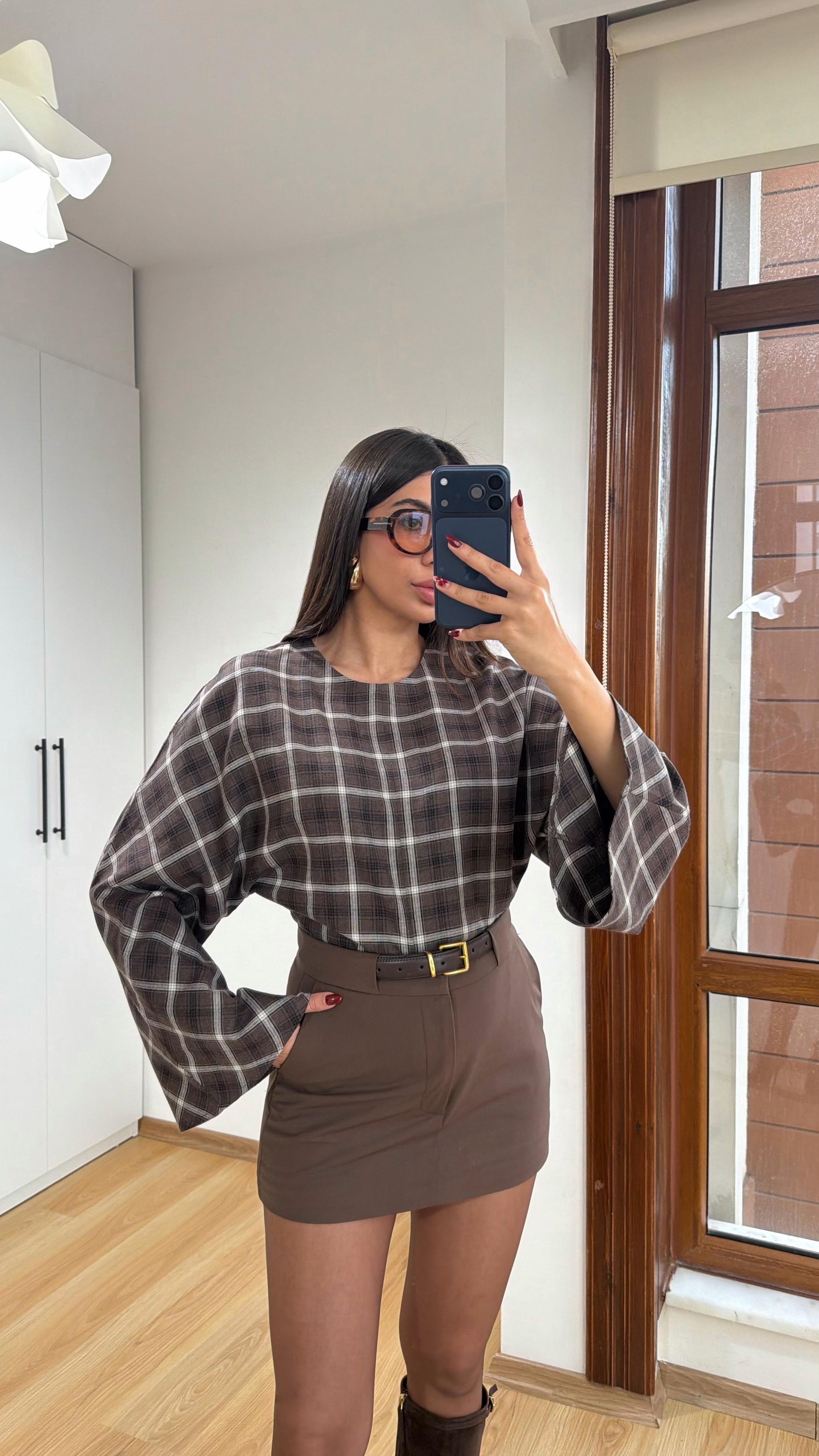 Kahve Ekoseli Muadil Bluz GAUS-00721