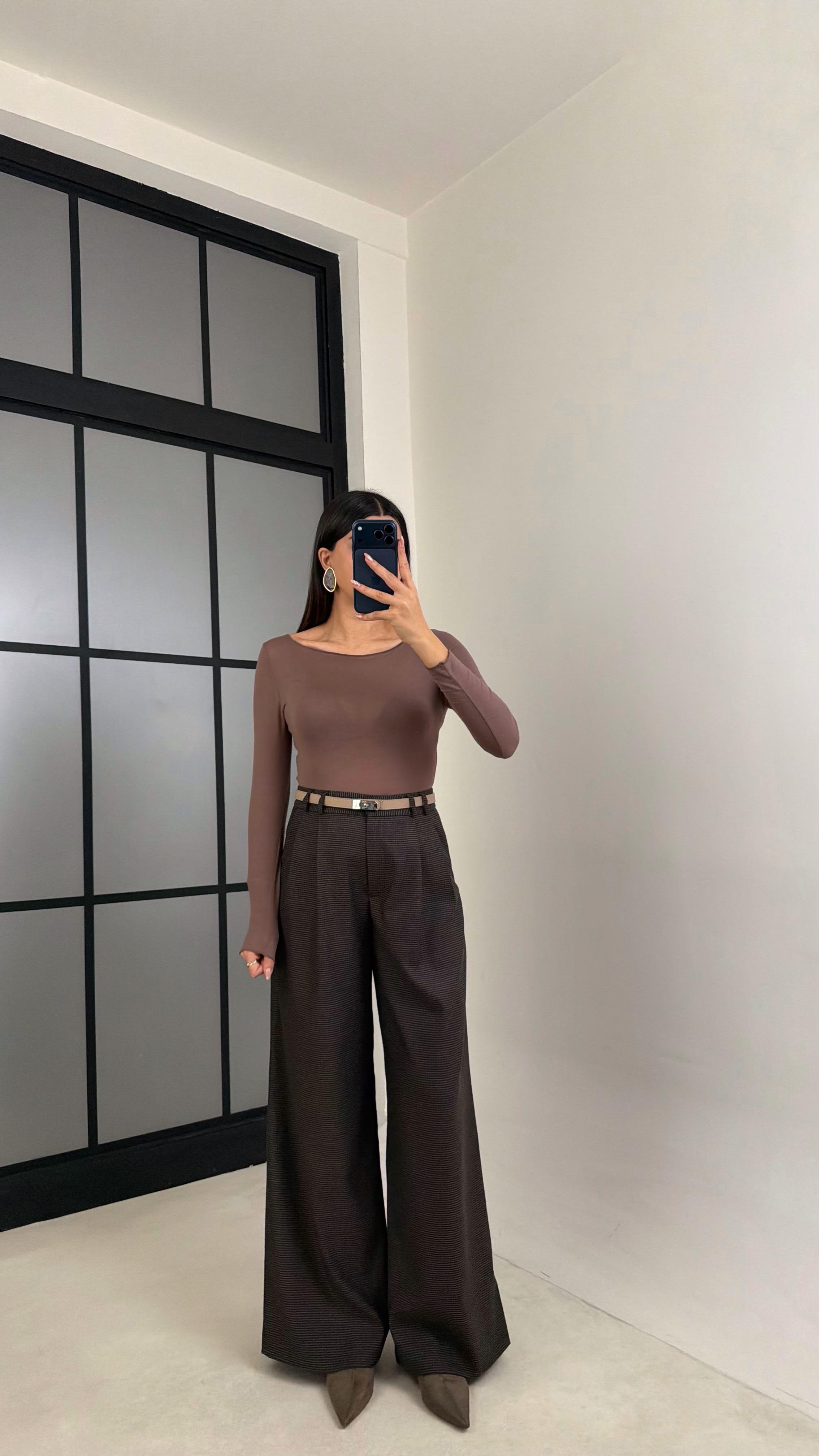 Kahve Pile Detaylı Desenli Kumaş Pantolon GAUS-00911GAUSPANTOLONGAUS-00911