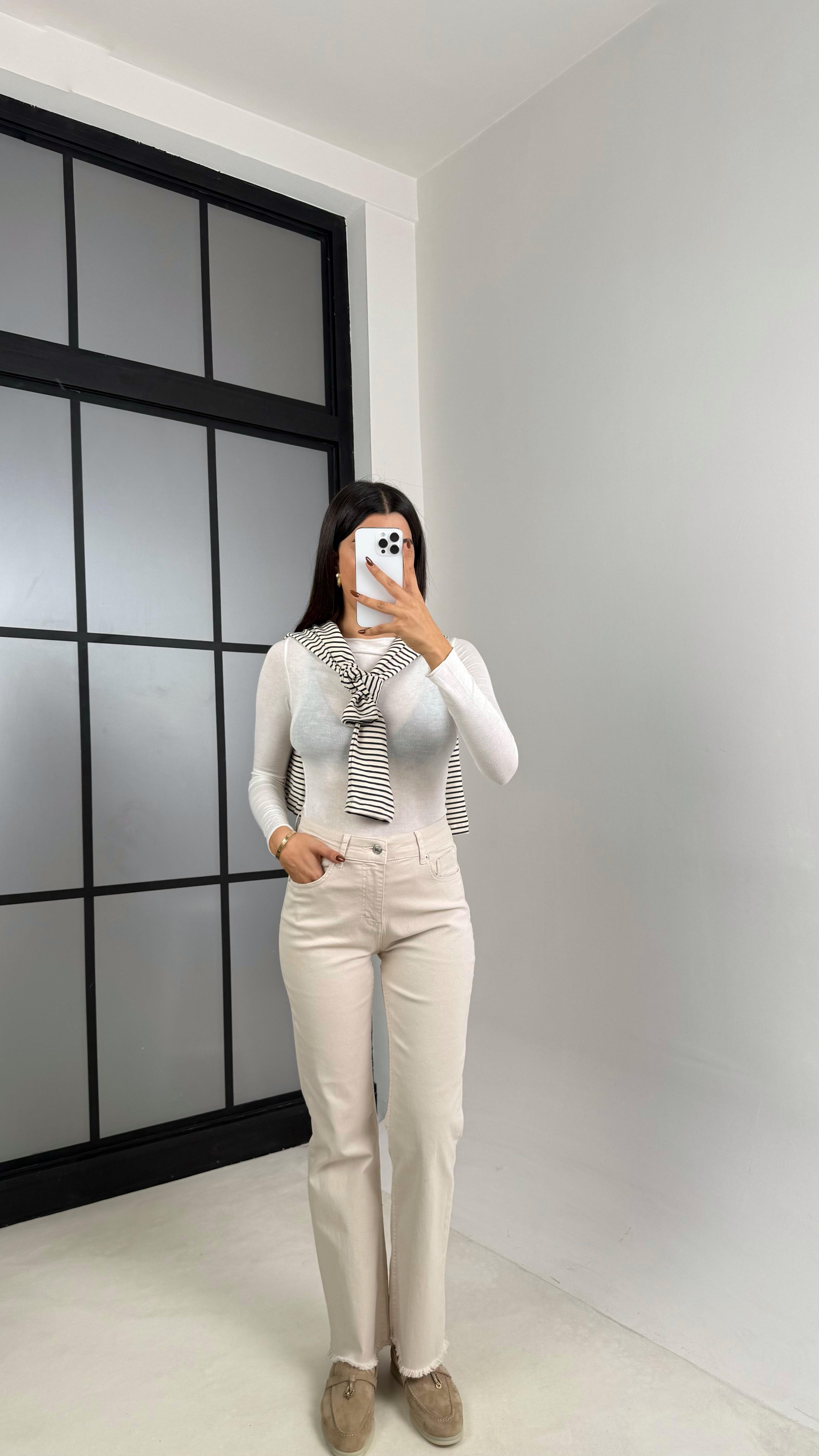 Krem Püskül Detaylı Kesik Paça Flare Jean GAUS-00479GAUSDENİM PANTOLONGAUS-00479