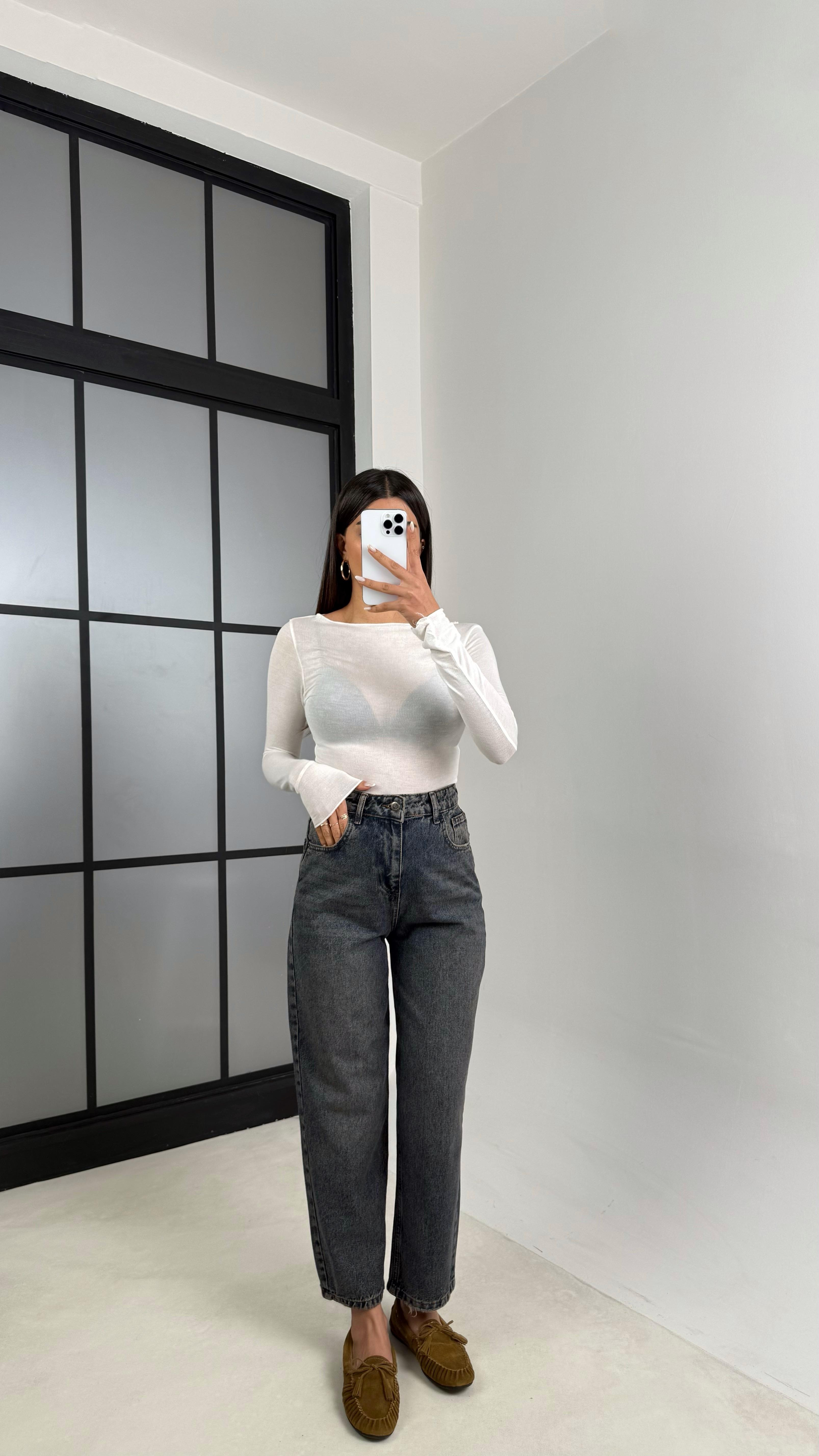 Lacivert Eskitmeli Paça Detaylı Mom Jean GAUS-00542GAUSDENİM PANTOLONGAUS-00542