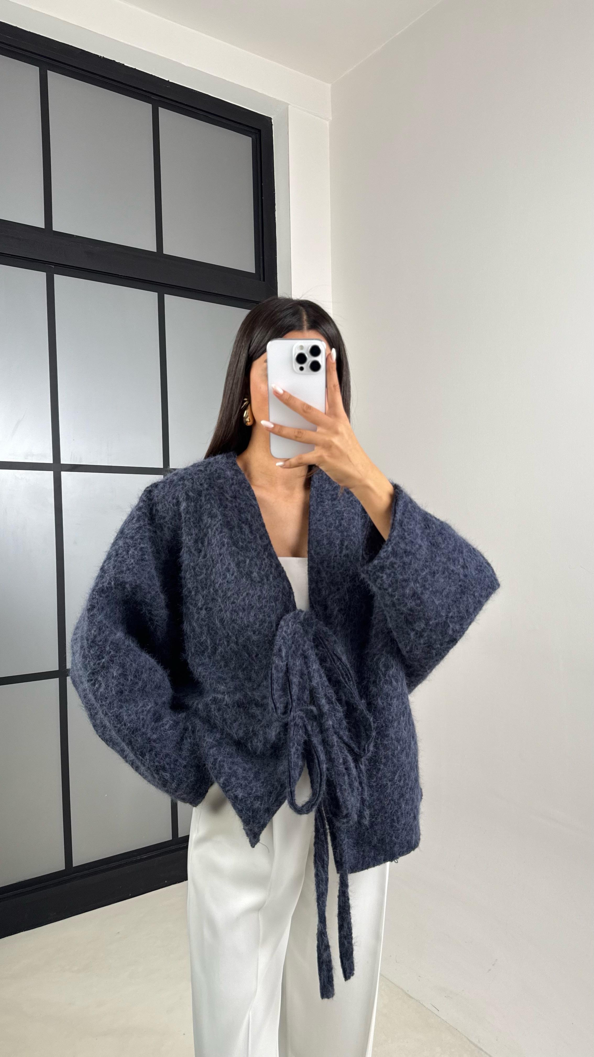 Lacivert Kırçıllı Astarlı Önden Bağlamalı Premium Ceket GAUS-00512GAUSCEKETGAUS-00512