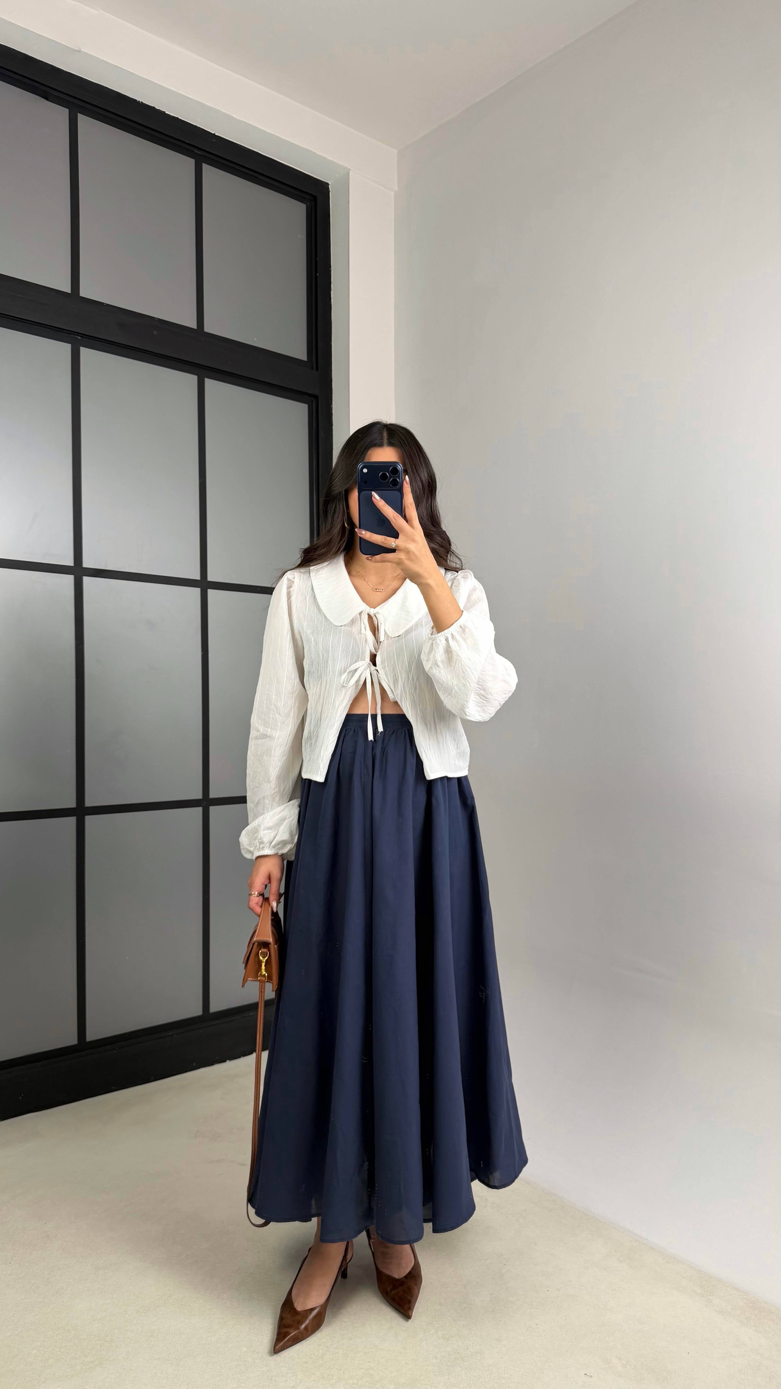 Lacivert Vual Astarlı Prenses Etek GAUS-01148