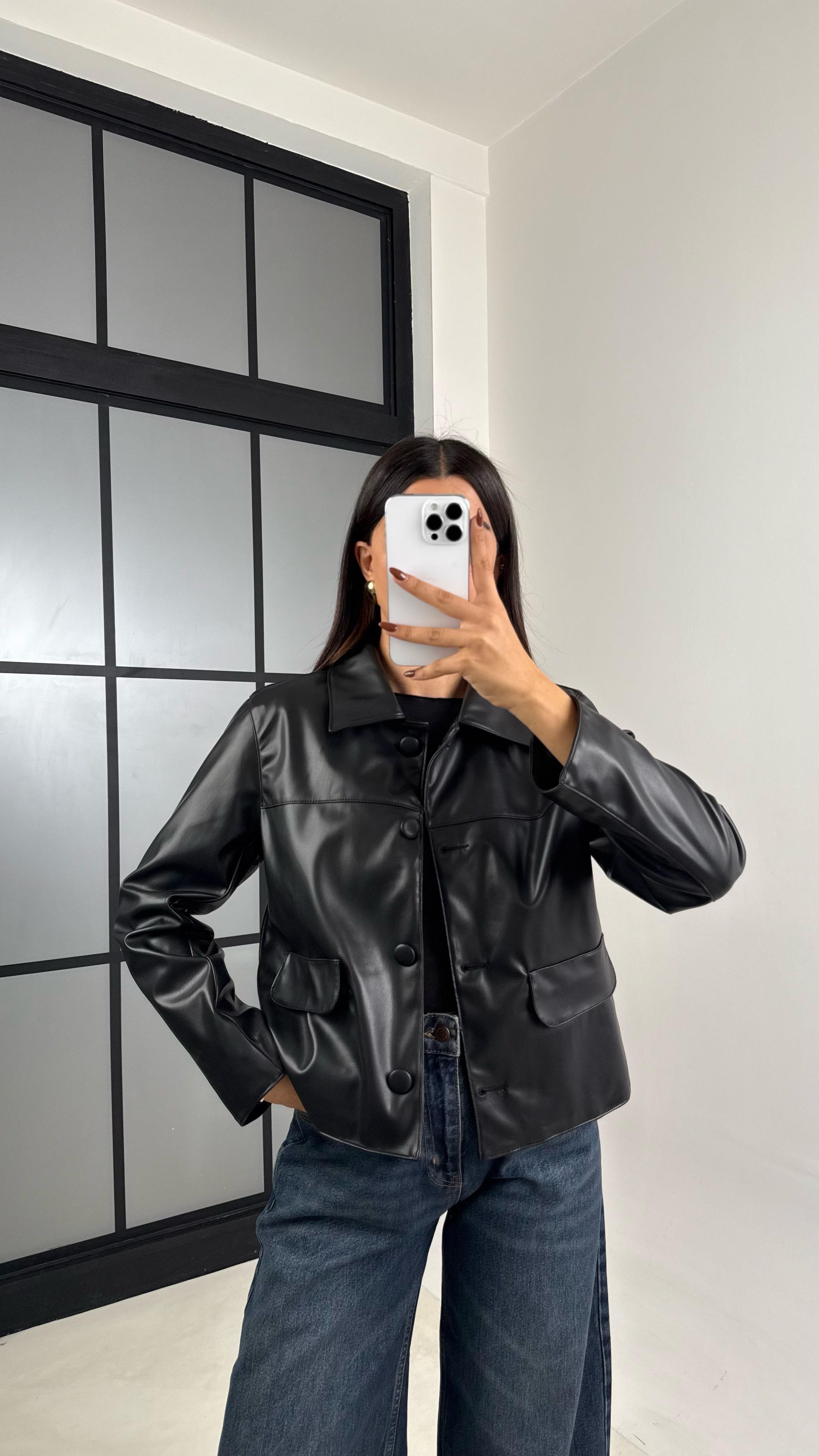 Siyah Astarlı Cep Detaylı Deri Ceket GAUS-00339