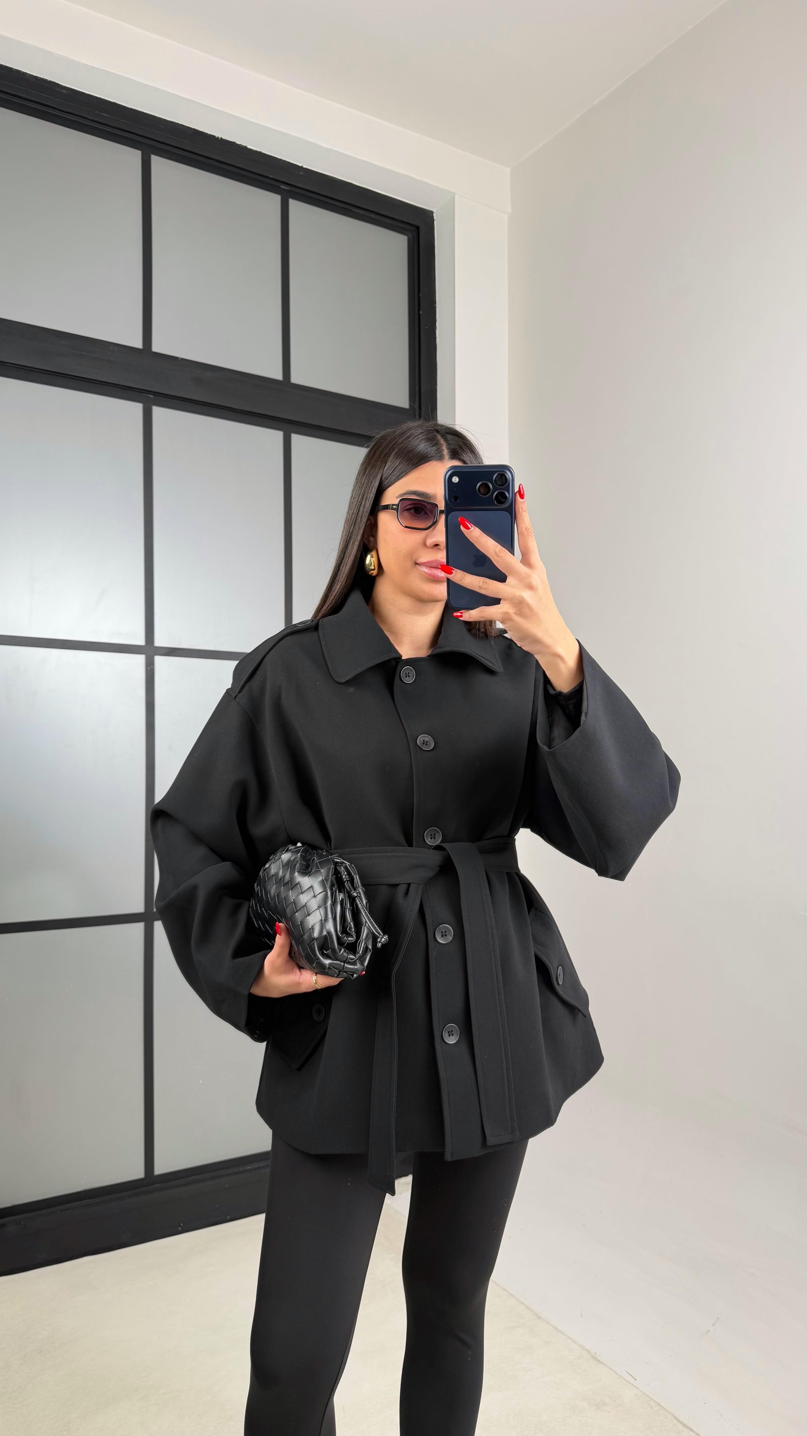 Siyah Astarlı Kuşaklı Apolet Detaylı Trençkot GAUS-00978