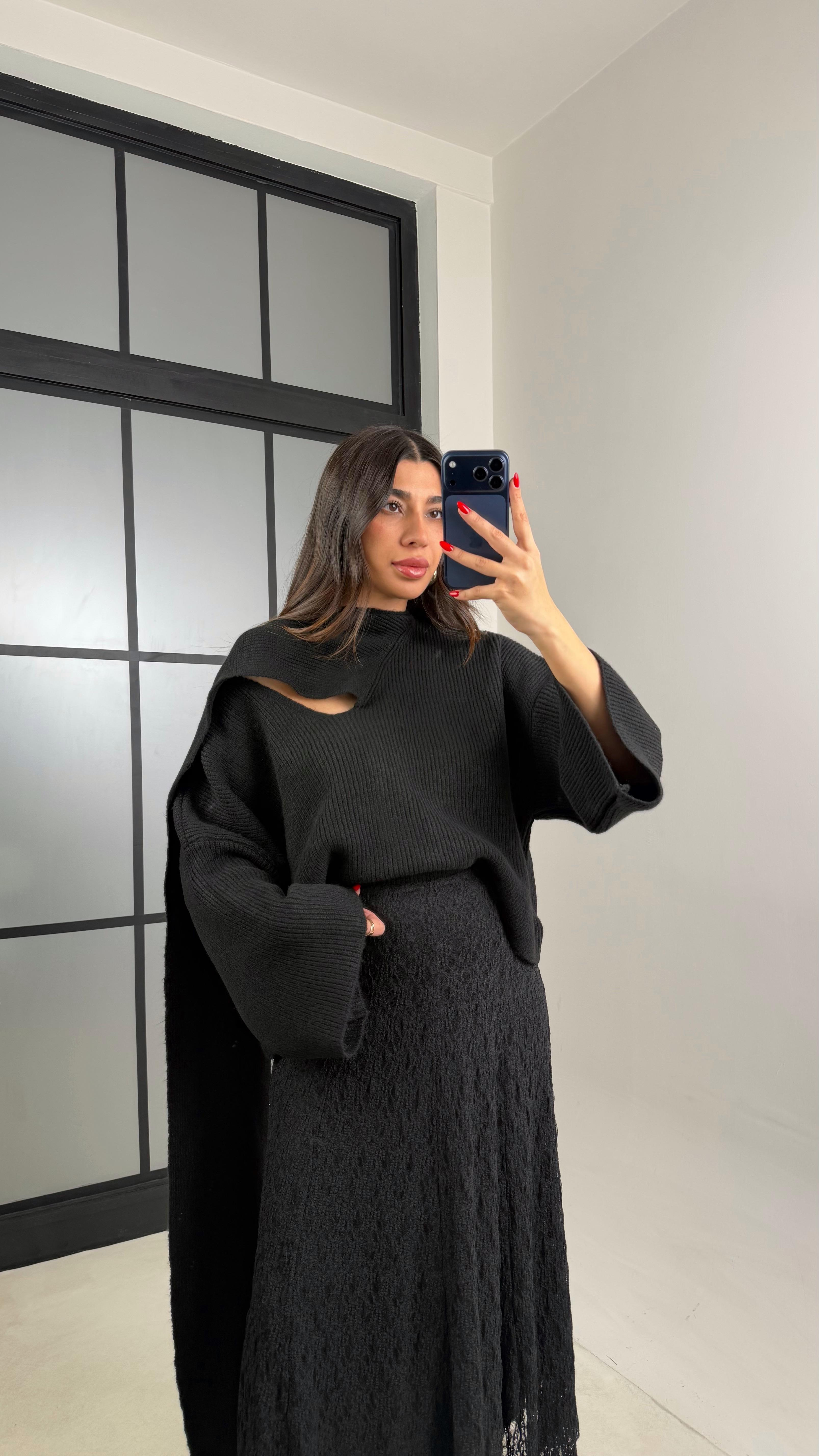 Siyah Atkılı Muadil Triko Kazak GAUS-00937