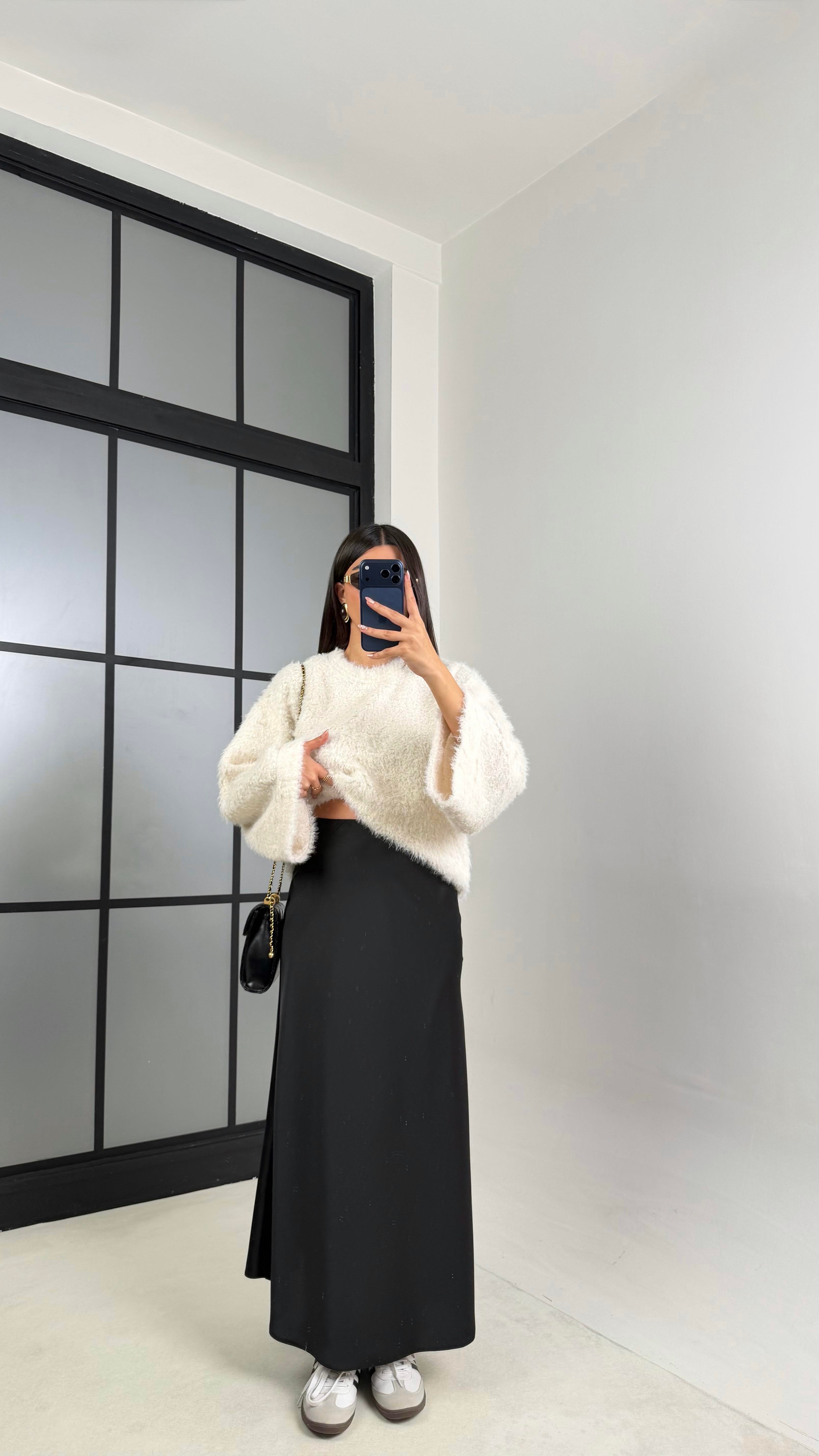 Acı Kahve Beli Lastikli Saten Etek GAUS-00819 Siyah Beli Lastikli Saten Etek GAUS-00819