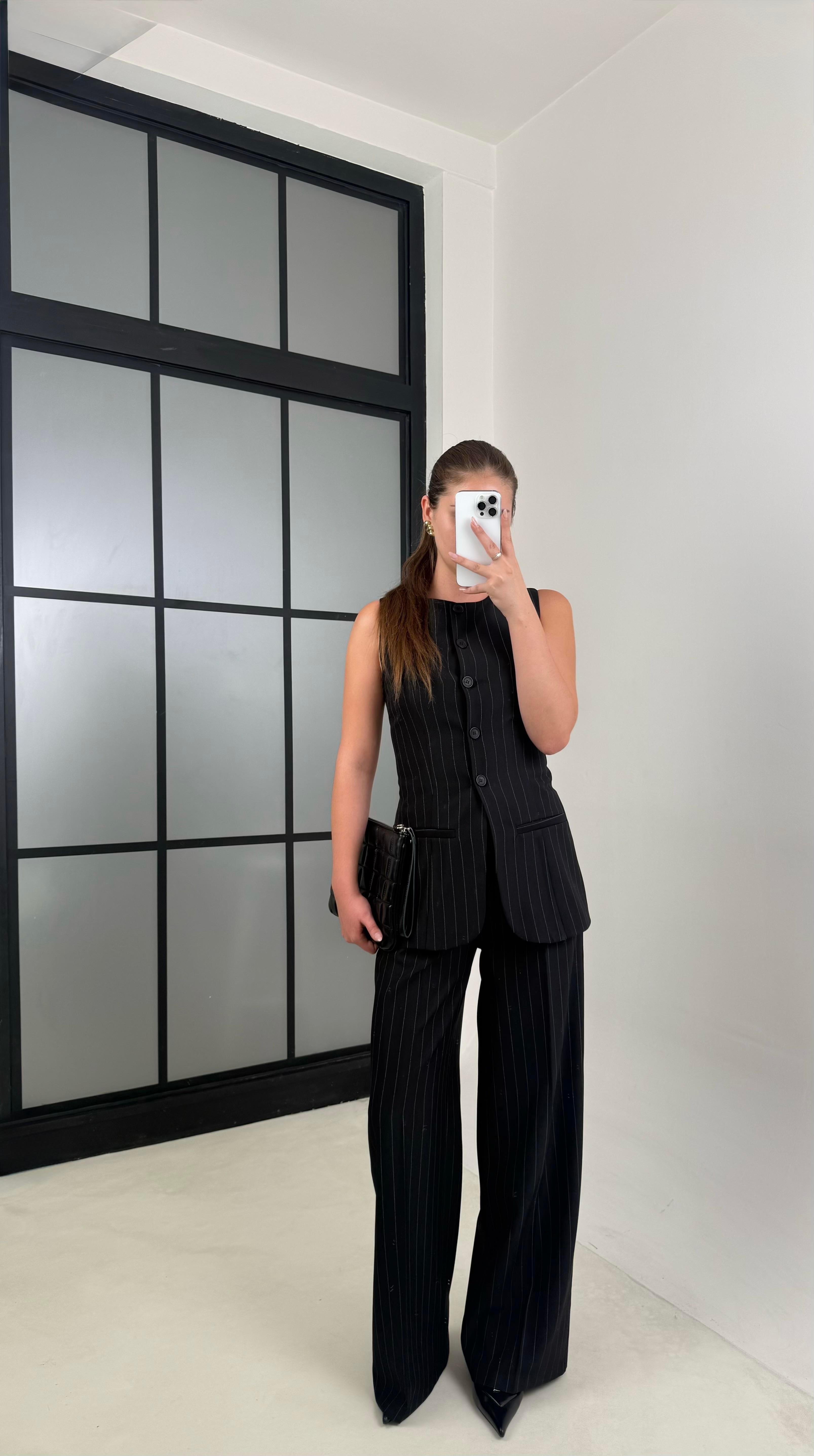 Siyah Çizgili Yelek Pantolon Kumaş Takım GAUS-00495