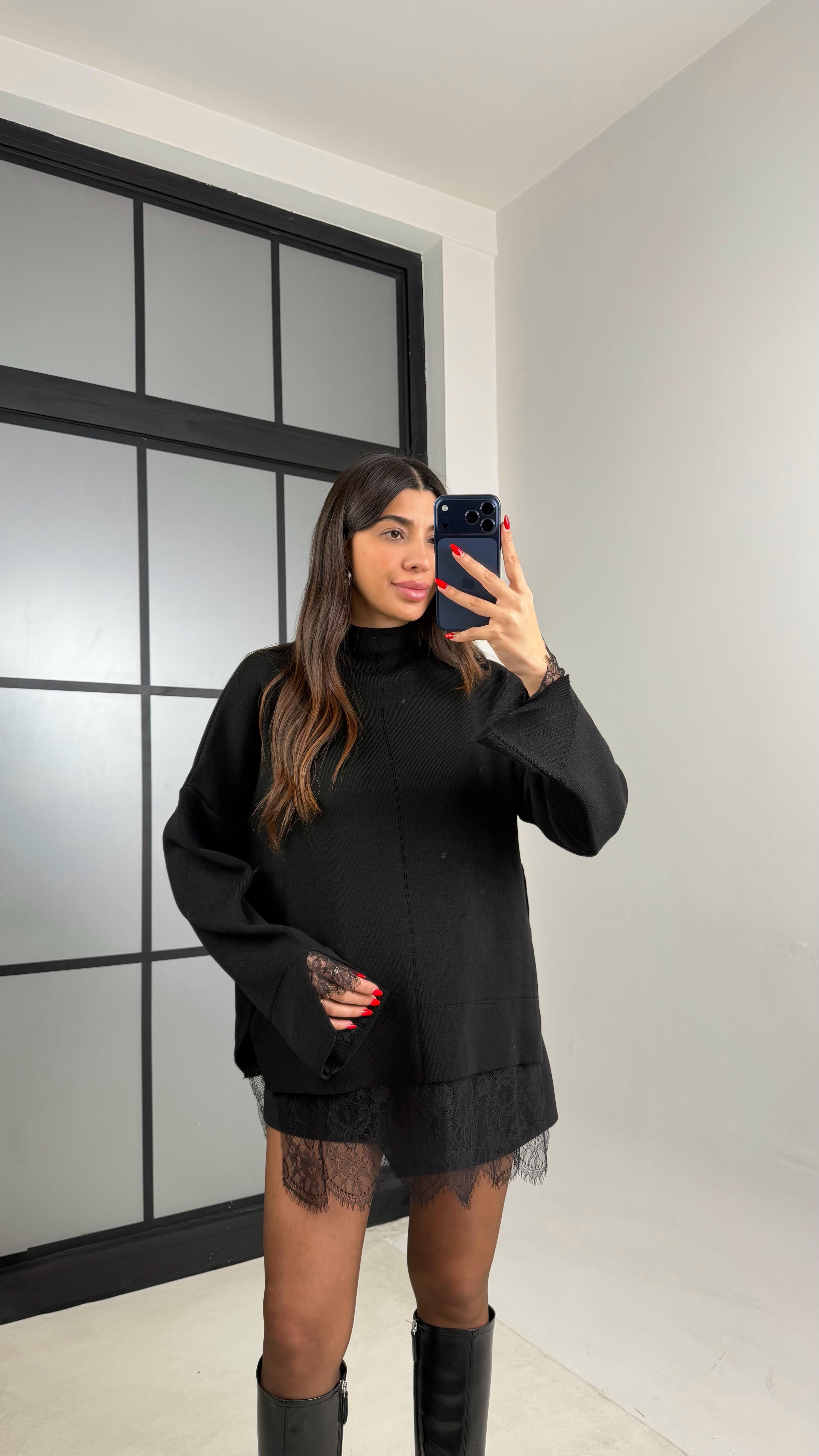Siyah Dantel Detaylı Triko Kazak GAUS-01055GAUSKAZAKGAUS-01055