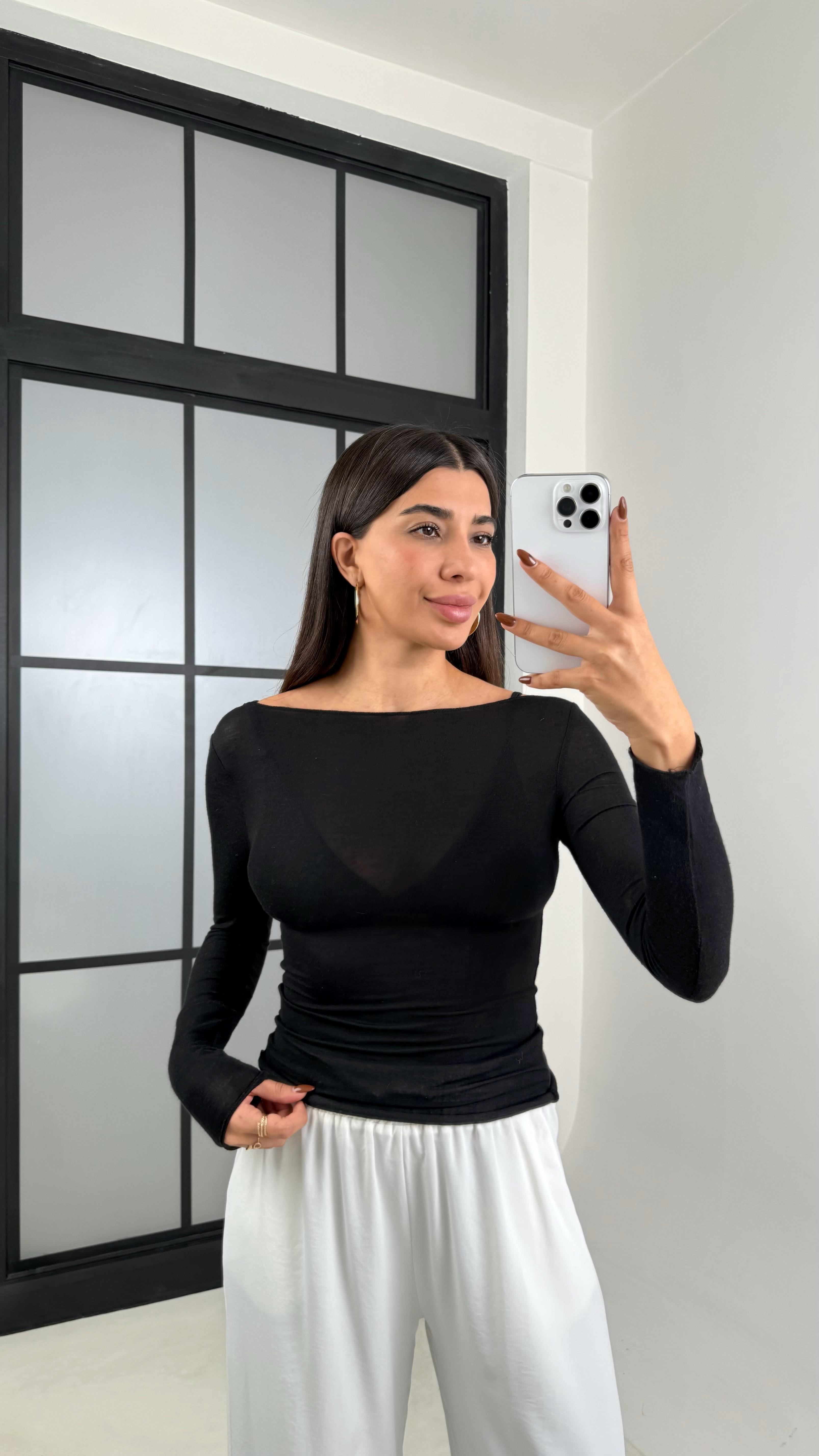 Siyah Kayık Yaka Muadil Transparan Bluz GAUS-00455GAUSBLUZGAUS-00455