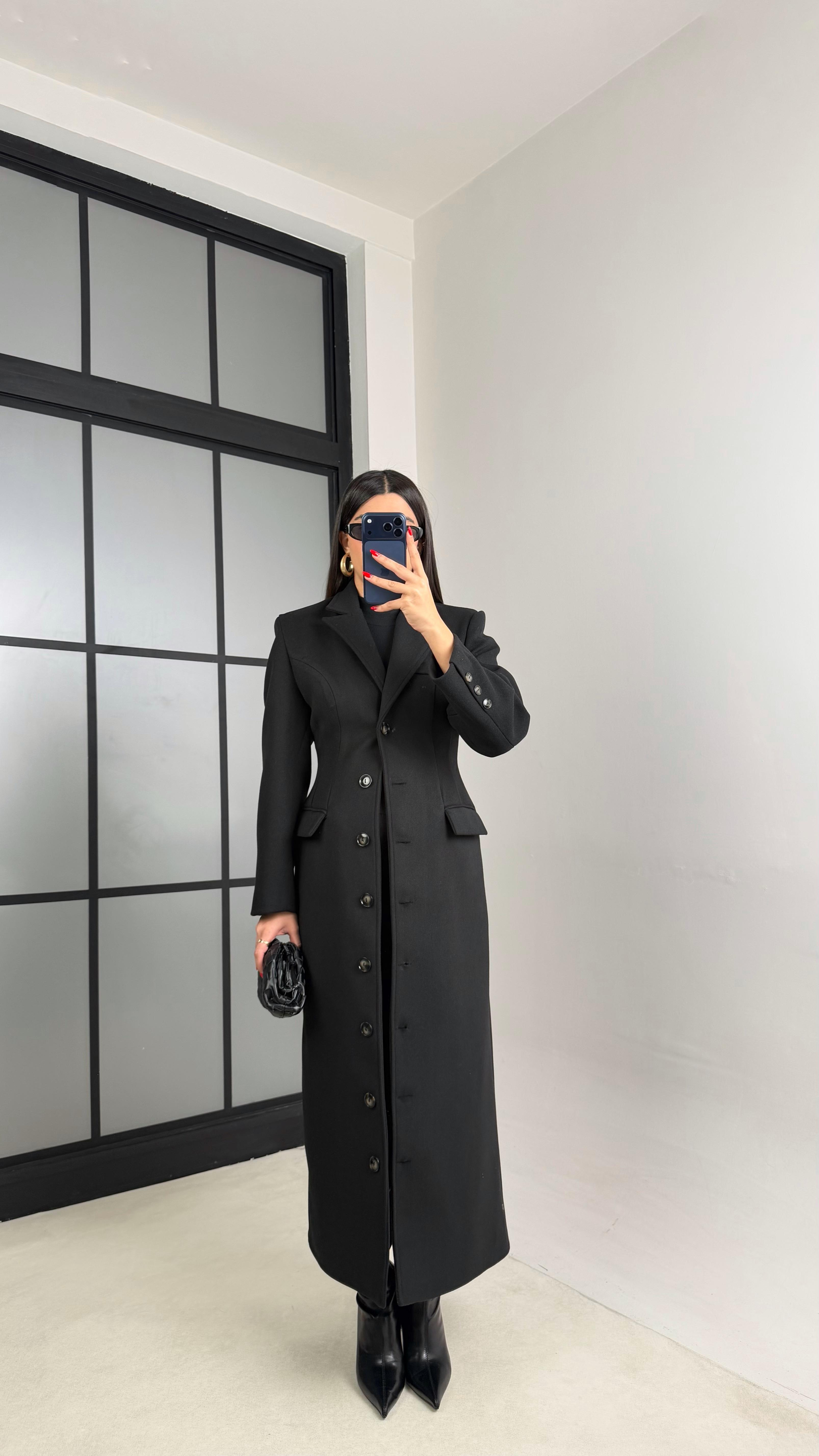 Siyah Önü Düğmeli Vatkalı Astarlı Premium Kaşe Kaban Gaus-01030GAUSKABANgaus-01030