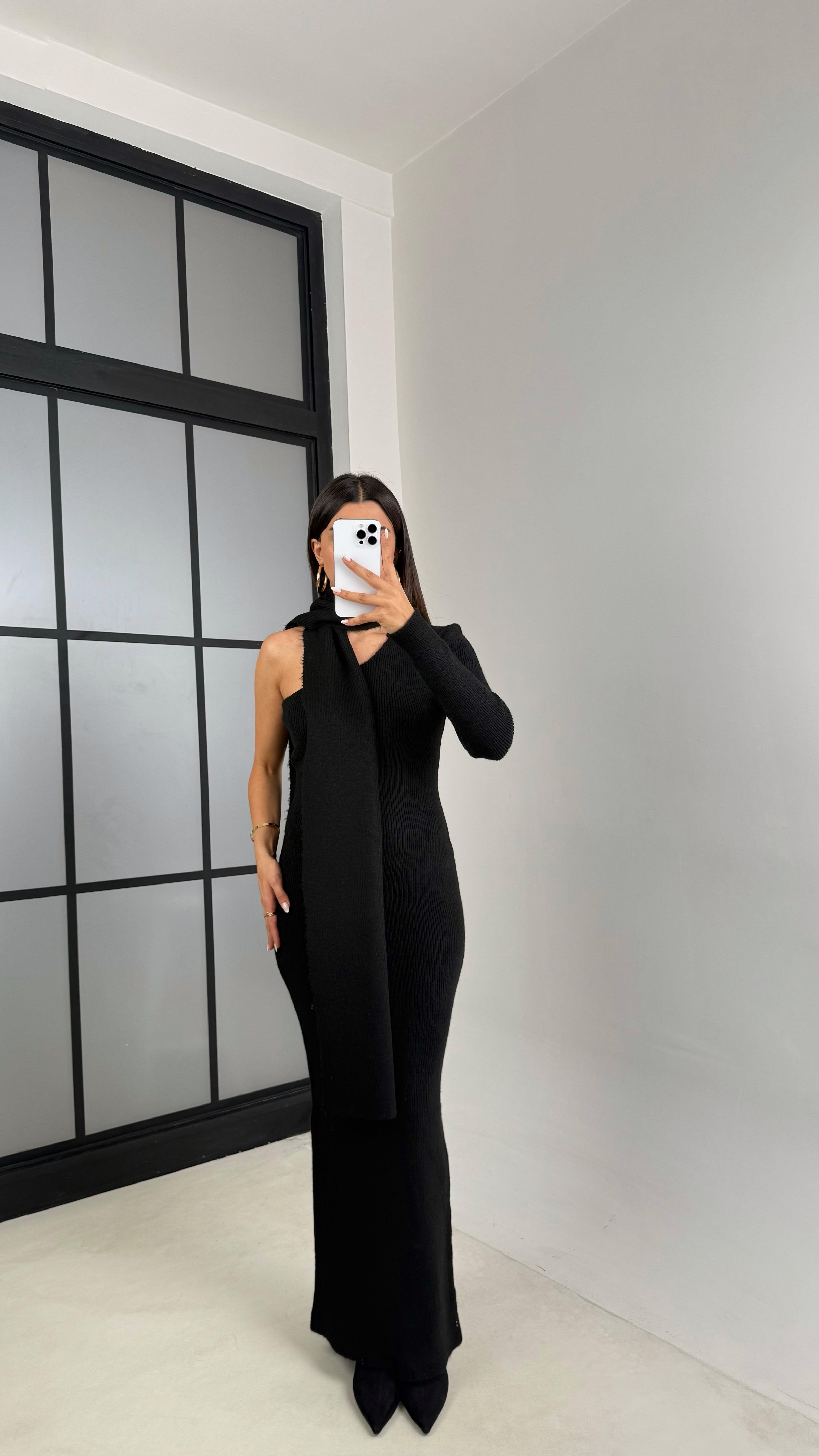 Siyah Tek Omuz Atkılı Triko Elbise GAUS-00223