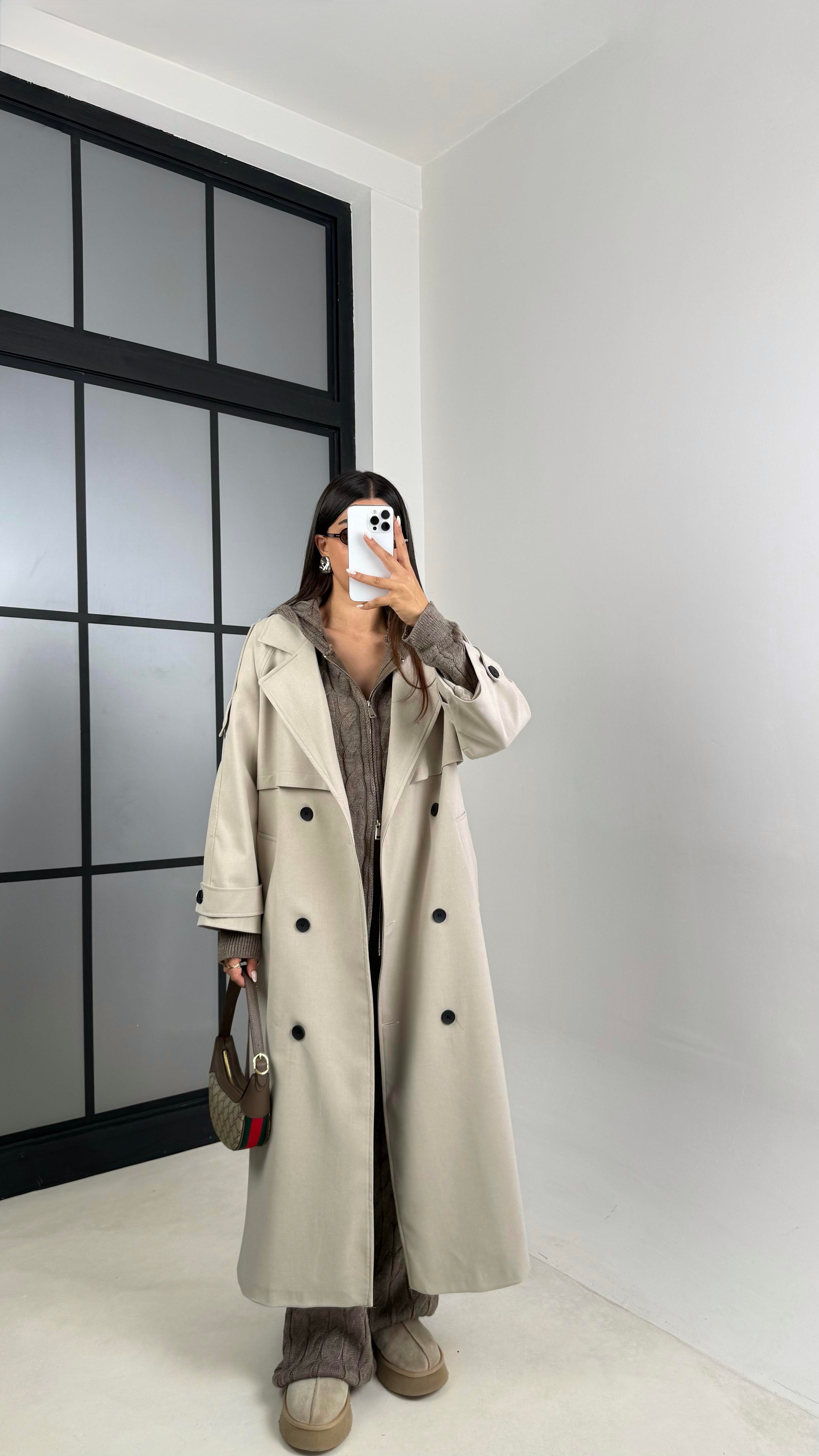 Taş Astarlı Kuşaklı Premium Trençkot GAUS-00516