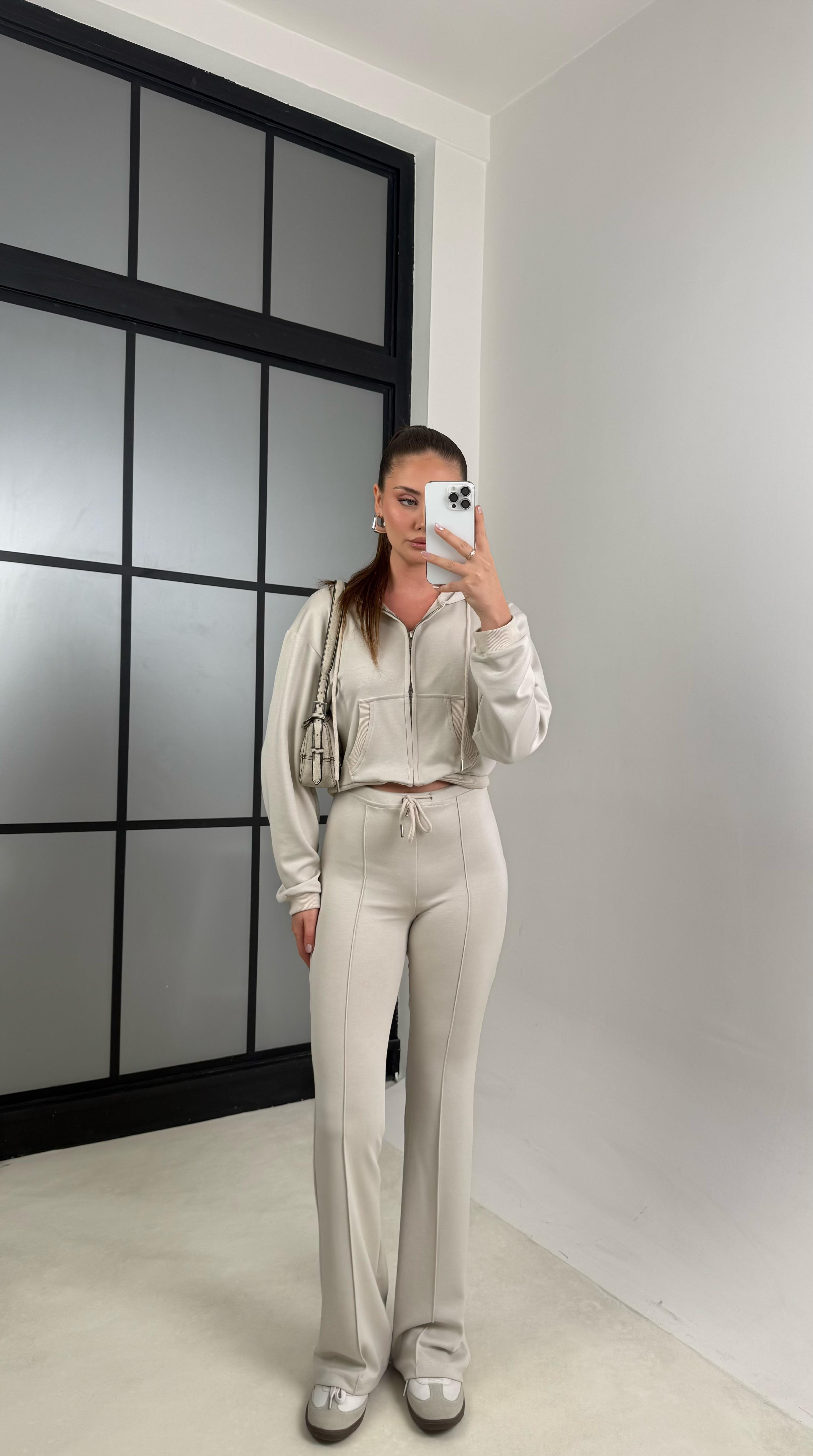 Taş Crop Hırka Beli Lastikli İspanyol Paça Pantolon İkili Takım GAUS-00557GAUSTAKIMGAUS-00557