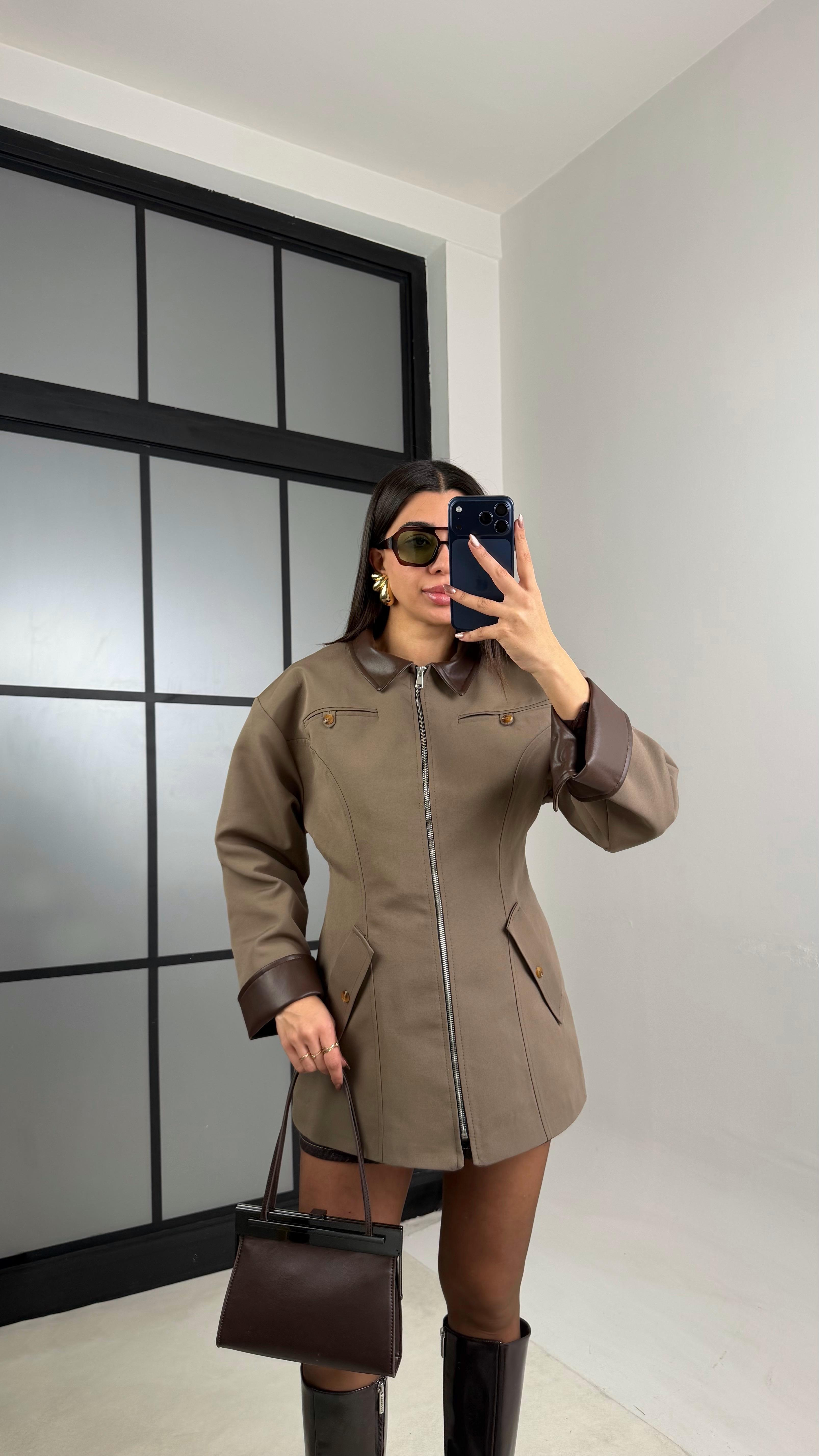 Vizon Deri Yaka Detaylı Astarlı Vatkalı Premium Ceket gaus-01027GAUSCEKETgaus-01027