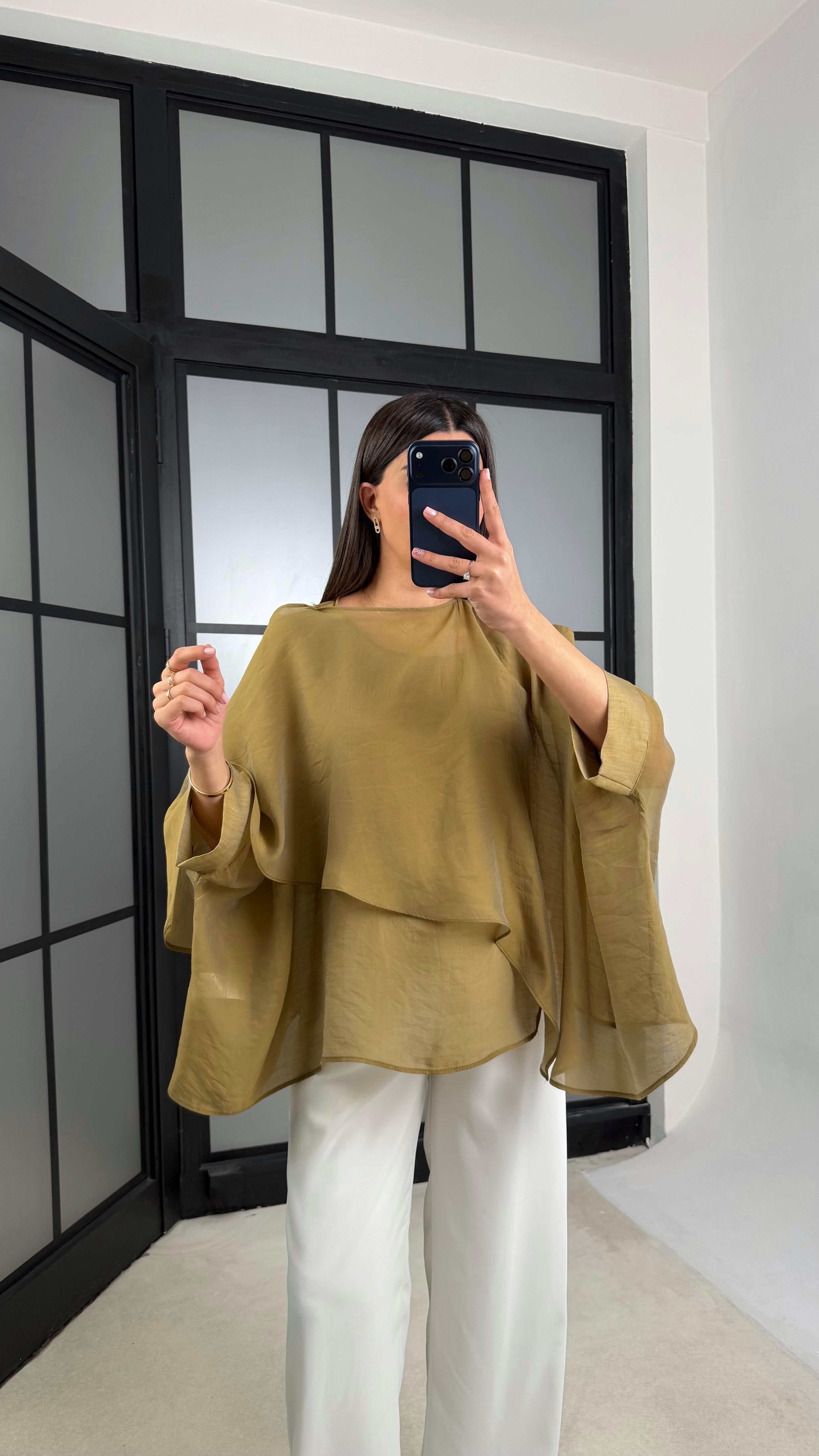 Yağ Yeşili Transparan Premium Tasarım Pelerin GAUS-01110GAUSBLUZGAUS-01110