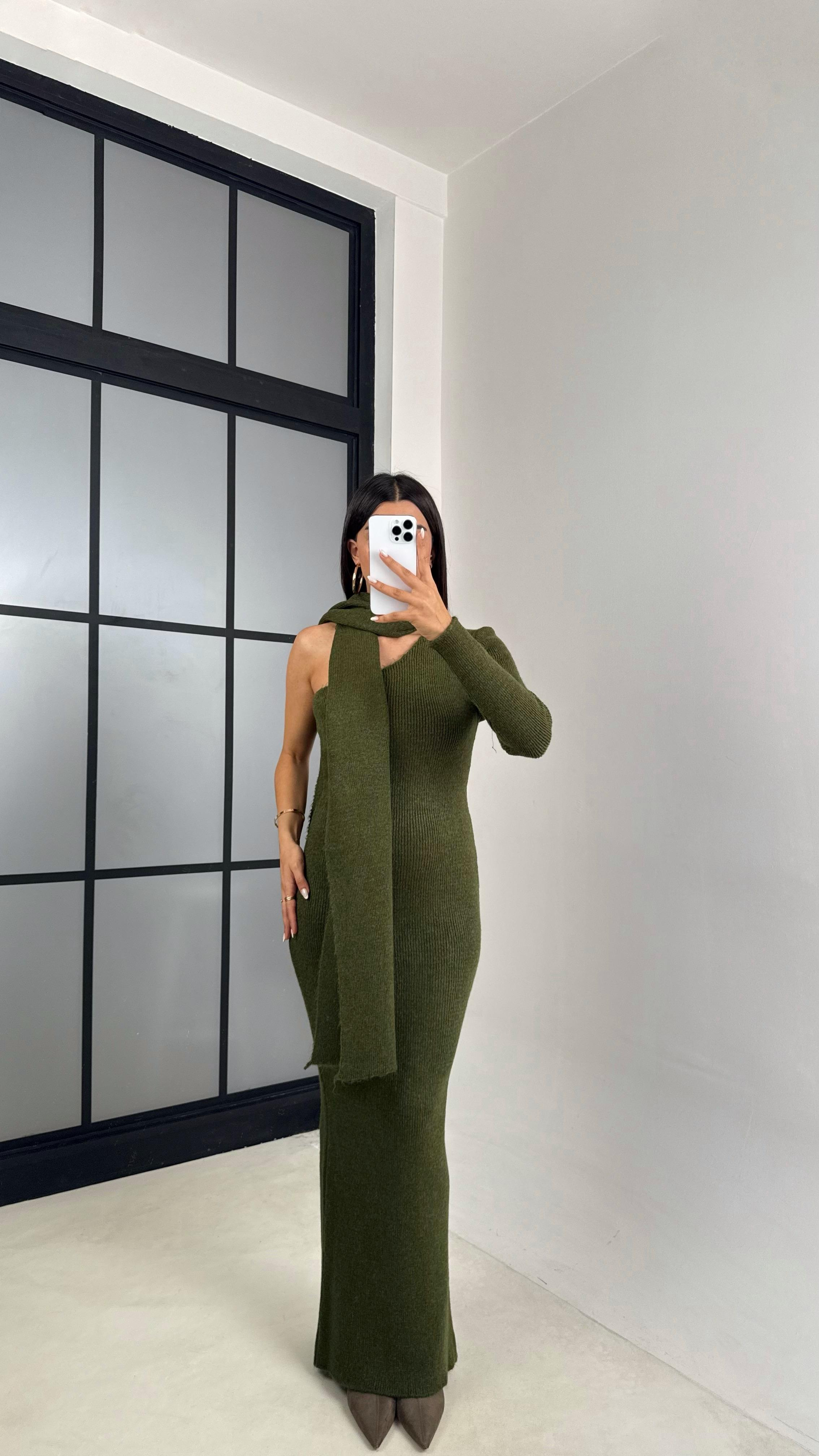 Yeşil Tek Omuz Atkılı Triko Elbise GAUS-00223